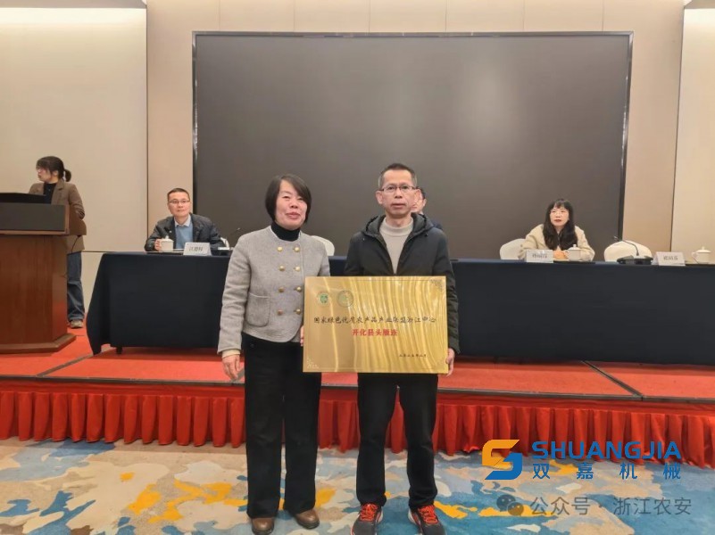 會(huì)期,浙江省農(nóng)業(yè)科學(xué)院農(nóng)業(yè)科技管理專家、國(guó)家綠色優(yōu)質(zhì)農(nóng)產(chǎn)品產(chǎn)業(yè)聯(lián)盟浙江中心主任褚田芬研究員為開(kāi)化縣農(nóng)業(yè)農(nóng)村局頒發(fā)了“國(guó)家綠色優(yōu)質(zhì)農(nóng)產(chǎn)品產(chǎn)業(yè)聯(lián)盟浙江中心 開(kāi)化縣頭雁連”牌匾。(來(lái)源:浙江農(nóng)安)