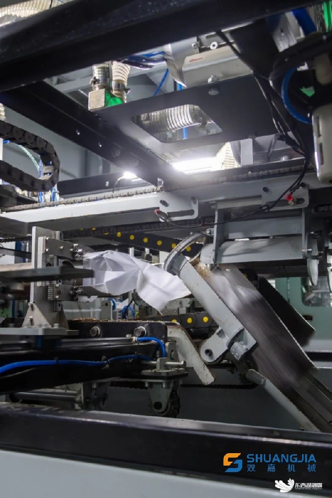 在自動裝袋區(qū),生產(chǎn)線代替人工完成套袋、填料、窩口、插棒、裝袋進筐等一系列復(fù)雜動作。立式螺旋填料方式讓裝料更密實,每包菌棒長度、重量一致。