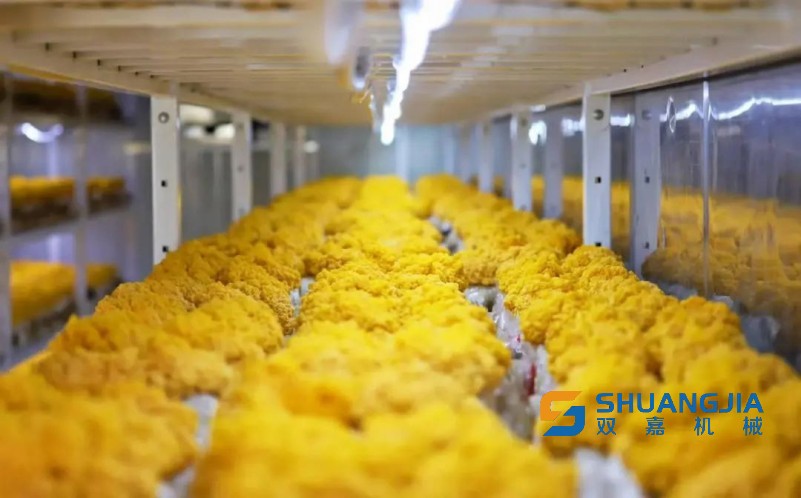 據(jù)了解,種植基地由廢棄學(xué)校改建而來,10個(gè)集裝箱般的“智慧方艙”整齊排列。步入恒溫恒濕的方艙,菌包整齊排列在架子上。原本生長于云貴高原的金耳,通過方艙內(nèi)集成的超聲波霧化、自動(dòng)恒溫、視覺感應(yīng)及人工智能系統(tǒng),實(shí)現(xiàn)了對溫度、濕度、光照、通風(fēng)及二氧化碳濃度的實(shí)時(shí)精準(zhǔn)調(diào)控,成功“北遷安家”,并實(shí)現(xiàn)“天天出菇”。