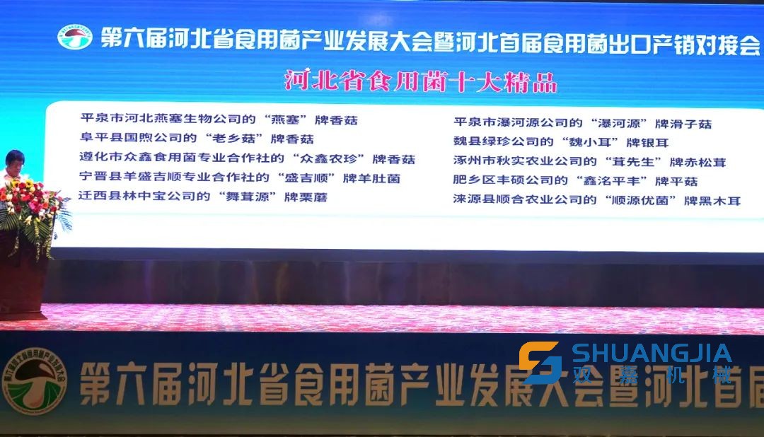 本次大會還設(shè)置有科技興菇、工廠化生產(chǎn)、數(shù)字菌業(yè)、百菇爭“宴”、物資裝備、標(biāo)準(zhǔn)種植等展區(qū),展示近年河北省食用菌產(chǎn)業(yè)的創(chuàng)新成果和名優(yōu)產(chǎn)品。會期,主辦方公布了河北省“十大食用菌精品”,平泉市河北燕塞生物公司的“燕塞”牌香菇;阜平縣國煦公司的“老鄉(xiāng)菇”牌香菇;遵化市眾鑫食用菌專業(yè)合作社的“眾鑫農(nóng)珍”牌香菇;寧晉縣羊盛吉順專業(yè)合作社的“盛吉順”牌羊肚菌等入圍十大食用菌精品名單。